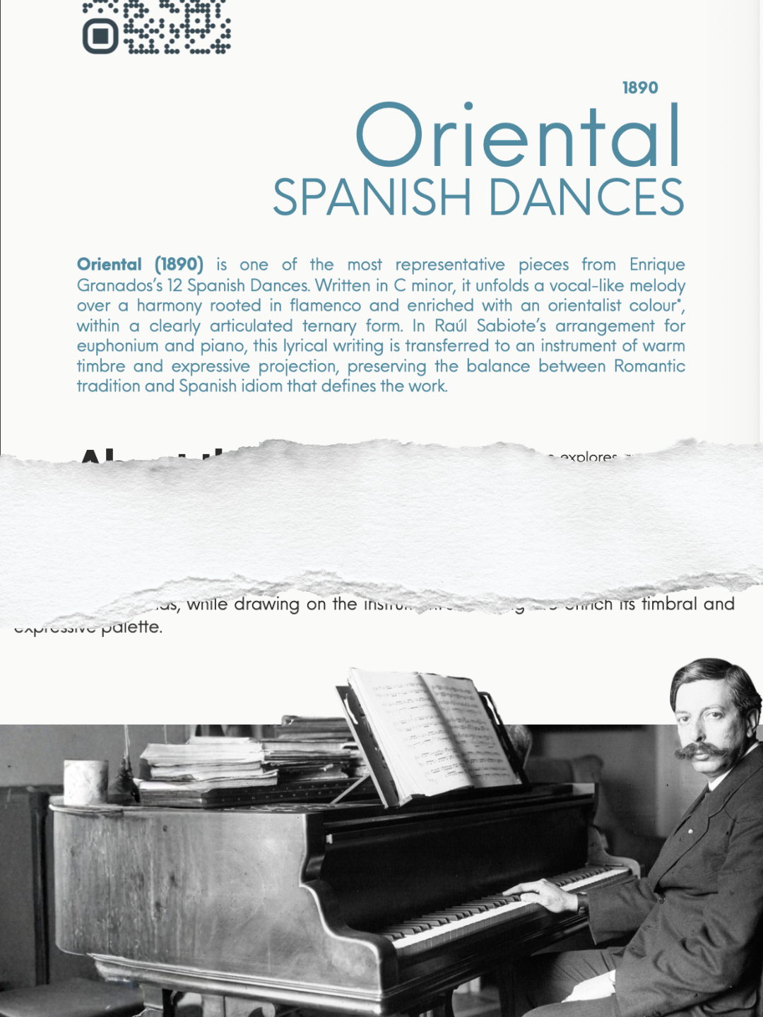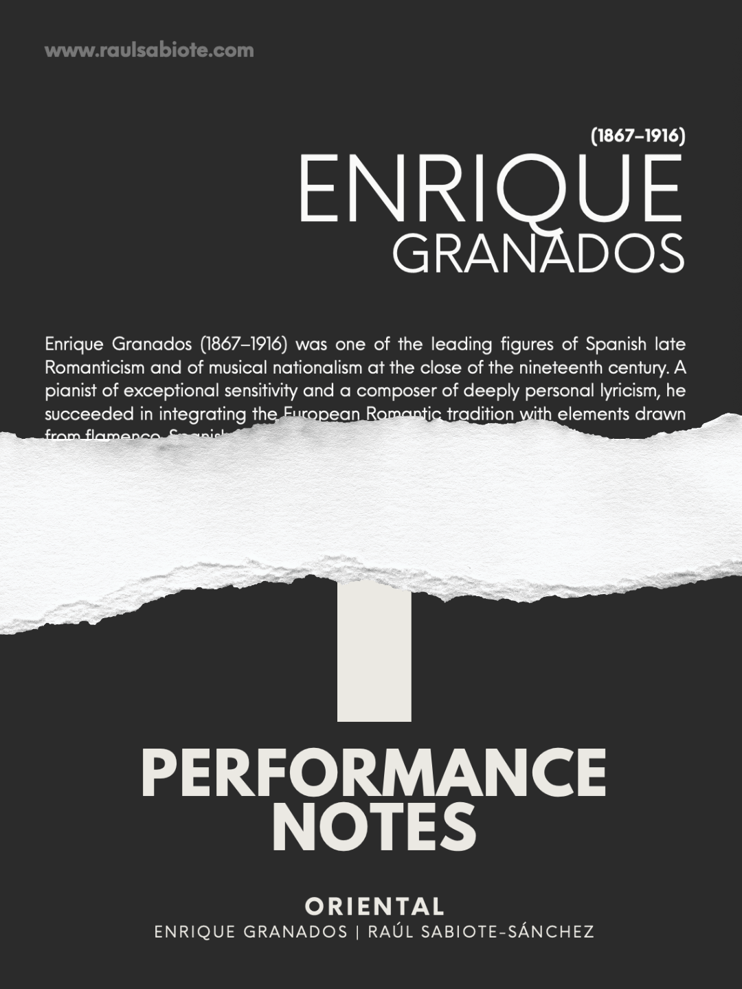 «Oriental» es una de las piezas que conforman las Danzas españolas, Op. 37, una de las colecciones más representativas del compositor español Enrique Granados. Escritas entre 1890 y 1900, estas danzas reflejan la diversidad de la música folclórica española, fusionando su esencia con la sensibilidad romántica de la época.